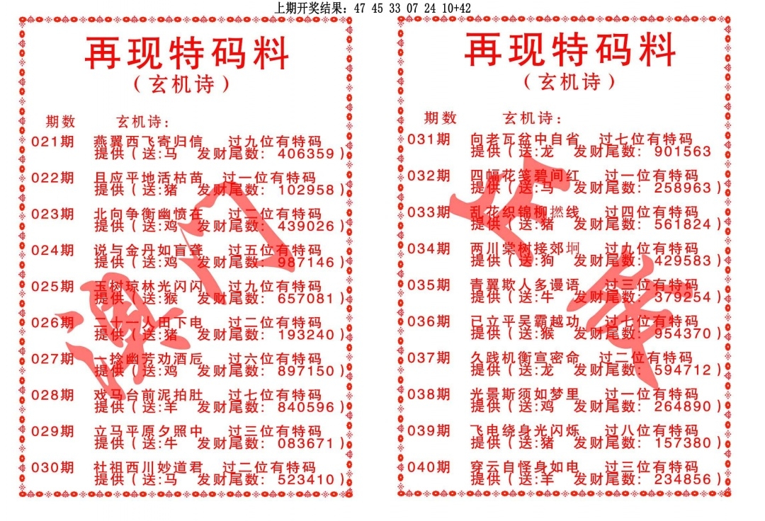 再现特码料