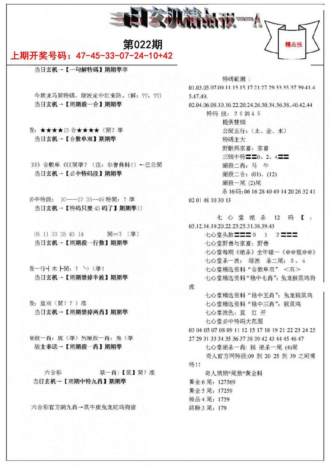 当日玄机精品报A